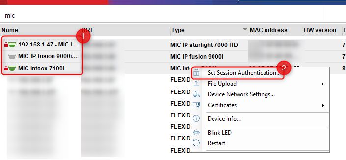 1. Open Configuration Manager > select all cameras you want to set the minimum TLS version to TLS 1.2 (CTRL + select cameras from the list) > right click and authenticate on them.