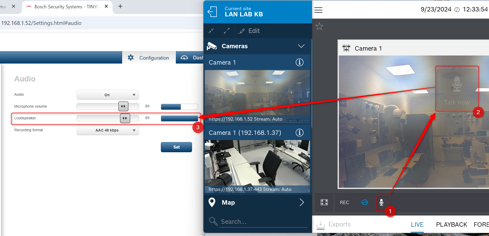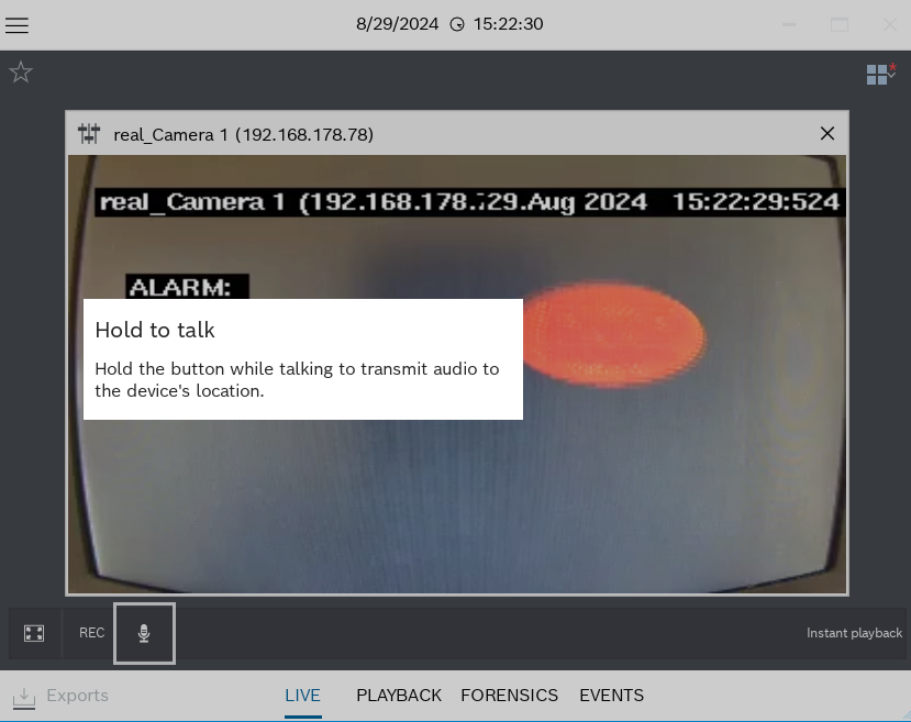 Note: Currently, the Audio-Playback is not available in Video Security Client/ App according to the Release Letter v3.7.0.