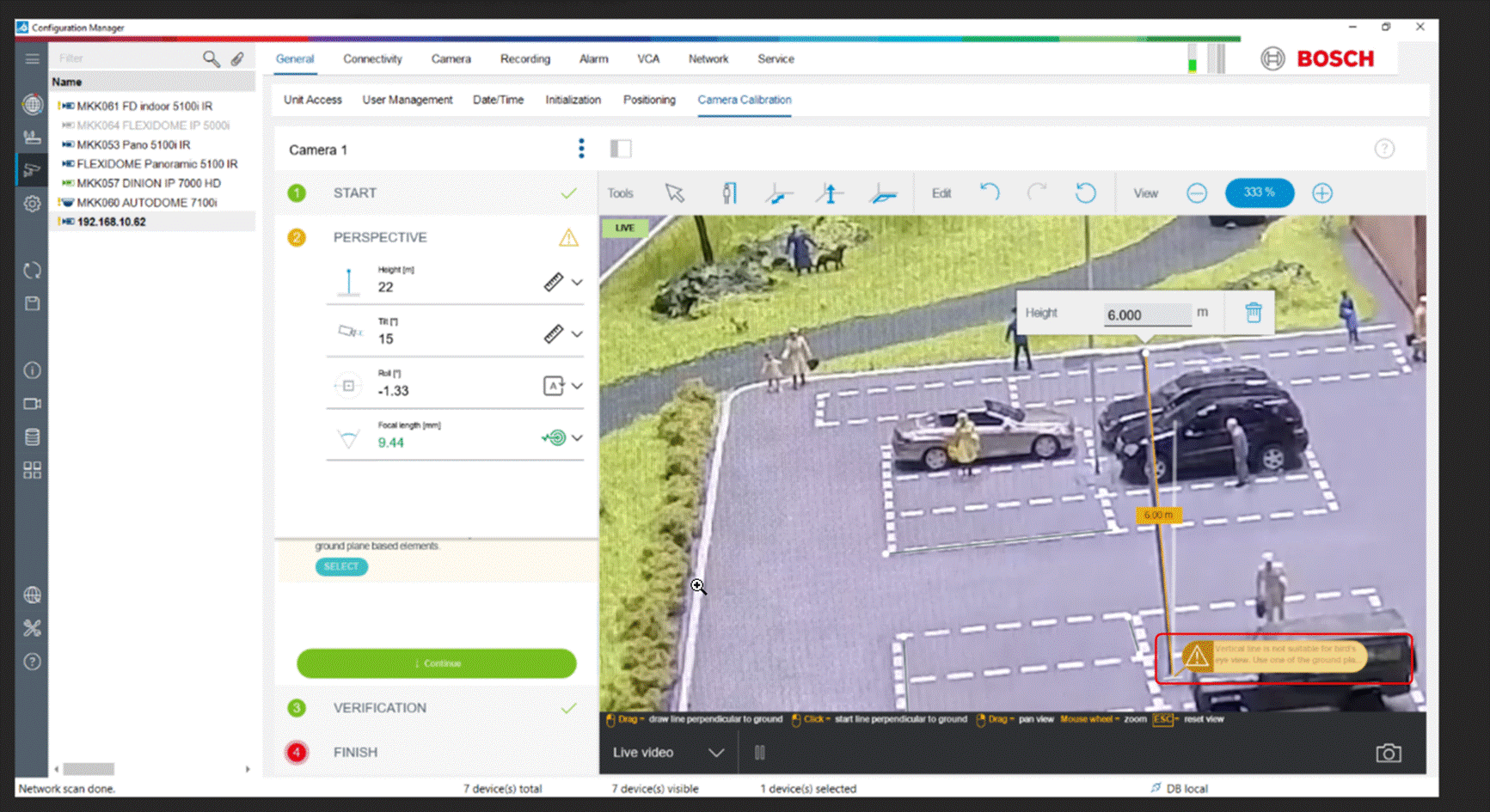 When using Bosch cameras for IVA Calibration performed with Bosch Configuration Manager 7.70.0090, the Scenario selection is not there anymore, and by default it selects bird's eye view.