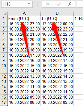 - The export is displayed in UTC (= Coordinated Universal Time).