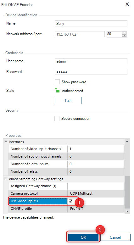 3. Check the box next to the "Use video input 1" option and click OK