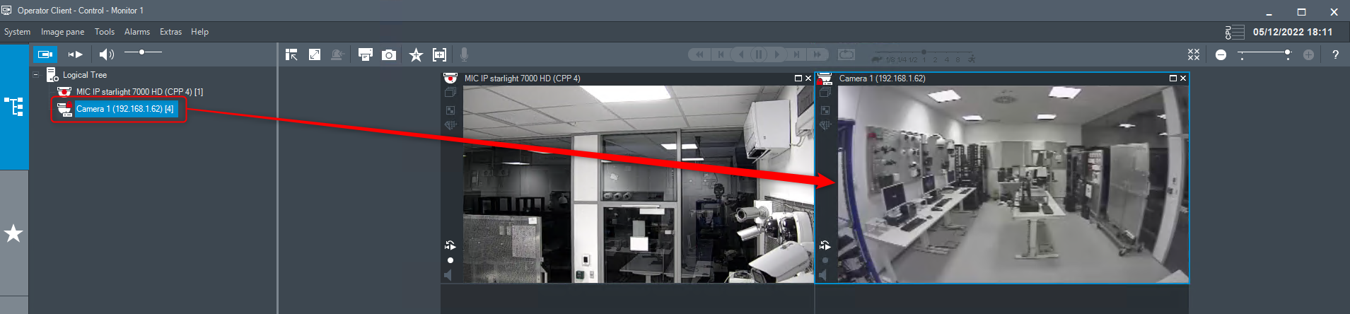 The camera is now visible in the Logical Tree and you can drag & drop the camera into the Image pane to see its image.