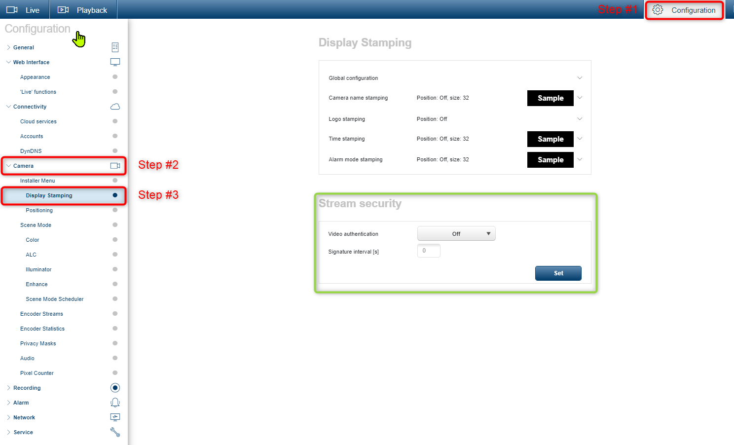 e. Video Authentication as you can see is set to OFF, this is the default setting for all cameras.