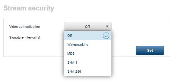 3 Video Authentication settings , MD5, SHA-1 or SHA-256.