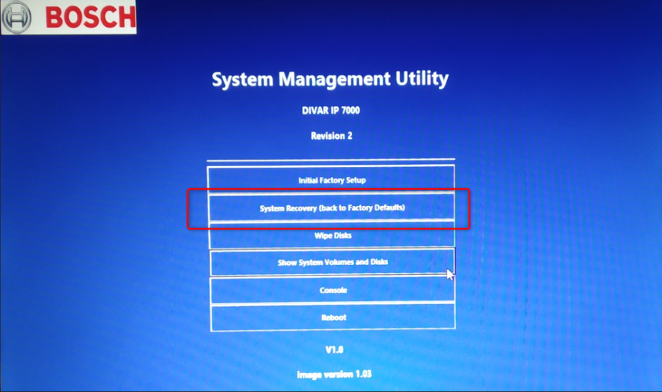 General note: Using a Bosch DIP system without video data disks is a non supported use case, its mandatory to equip the system with data disks to recover the system.