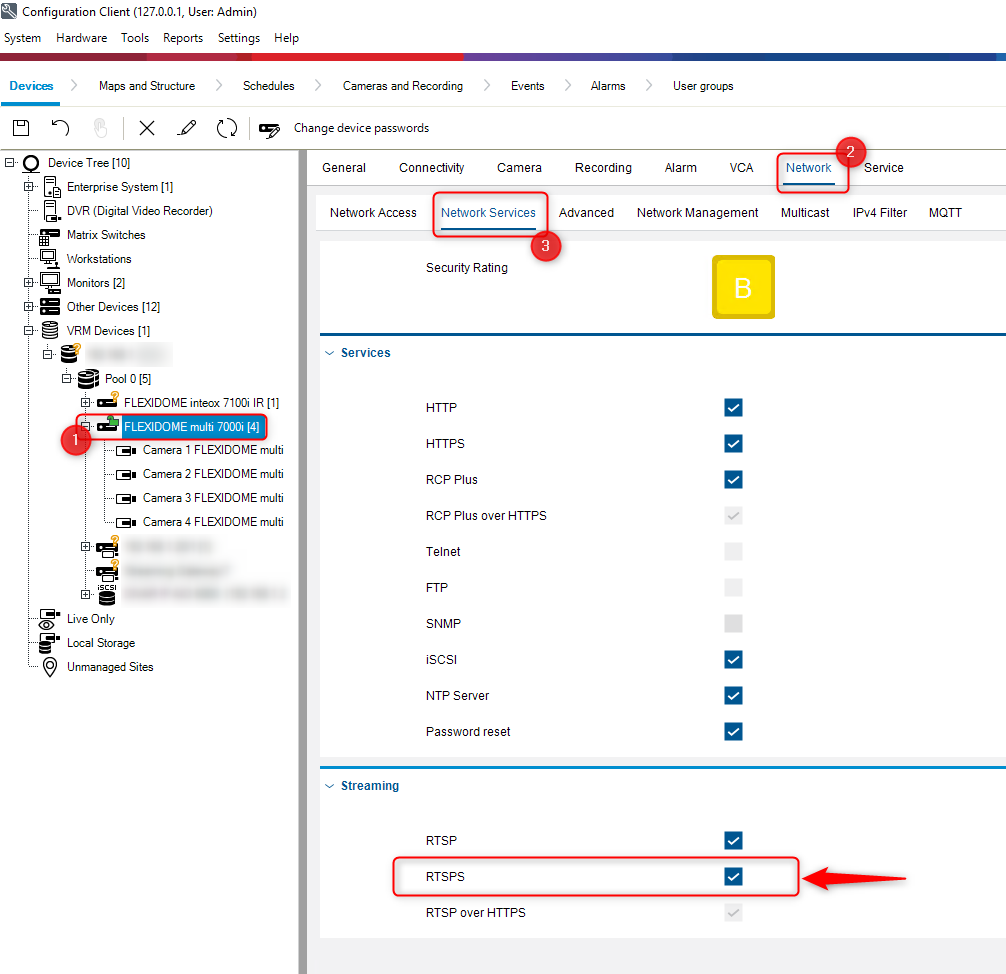 RTSPS protocol & FLEXIDOME multi 7000i explained (no live stream in BVMS Operator Client)
