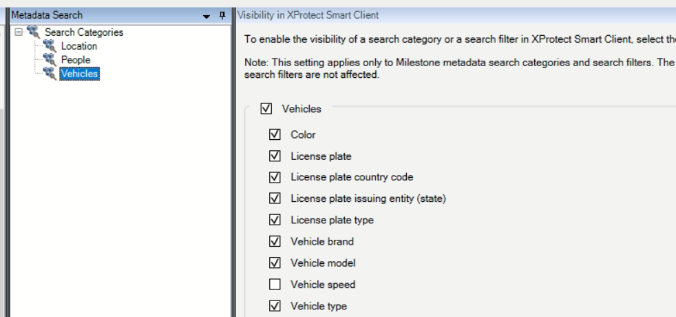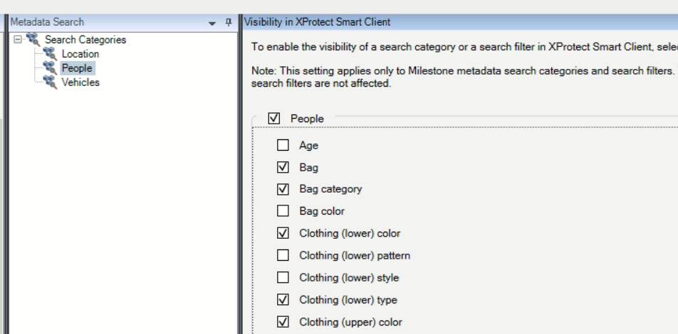 - There are dedicated settings for People related attributes and Vehicle related attributes.