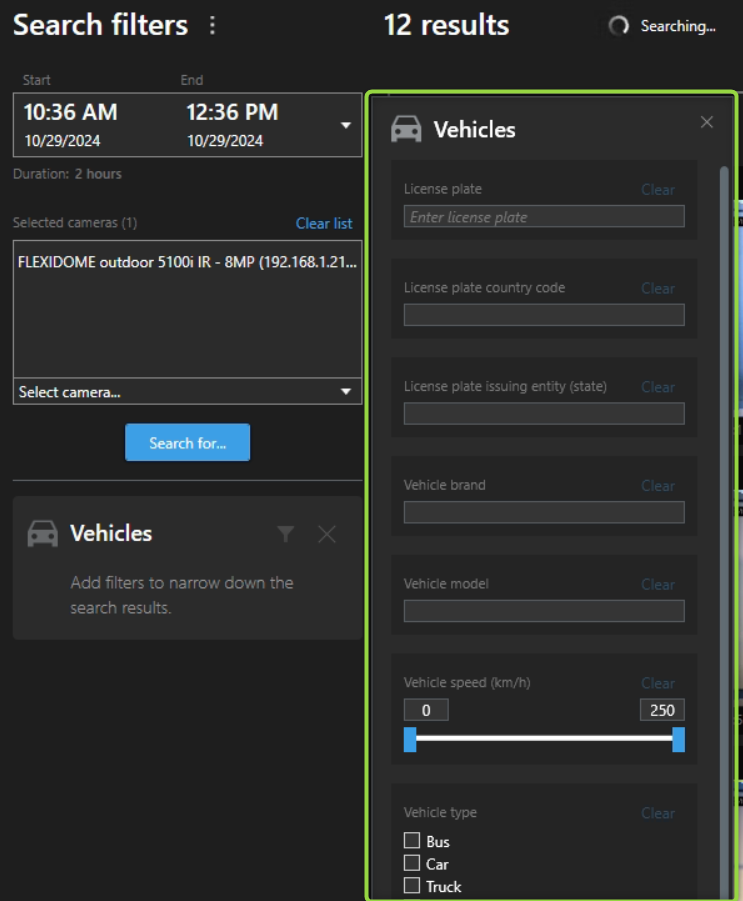 Note that not all of the searchable attributes are available with Bosch camera FW 9.40. Please have a closer look into the 'Known limitations' section.