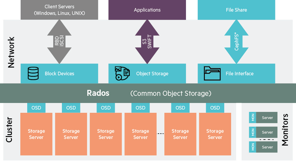 Density-optimized Apollo 4000 servers are ideal for use as the bulk storage OSD nodes. Ceph supports mixing Apollo 4000 server types and generations, enabling seamless growth with current technologies.