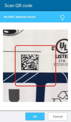 Symptom (1) can only happen when scanning a product label because some QR or Data Matrix codes do not contain a MAC address, depending on the product, even though the MAC address is available in plain text right next to the code.