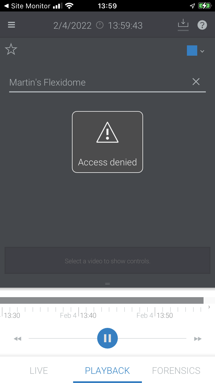 | To display recorded video on Site Monitor app is currently only supported for cameras connected via Remote Portal. Cameras commissioned with its MAC address, and 3rd party cameras are not supported to show up in Video Security app. | Register your cameras in Bosch Remote Portal and use the Alarm Management or Alarm Notification service. |