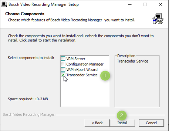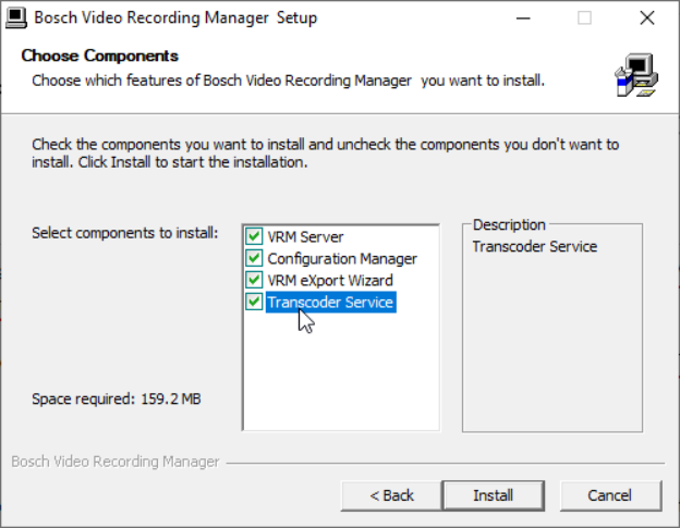 Due to the fact that BVMS does not manage the transcoder, it was not installed.