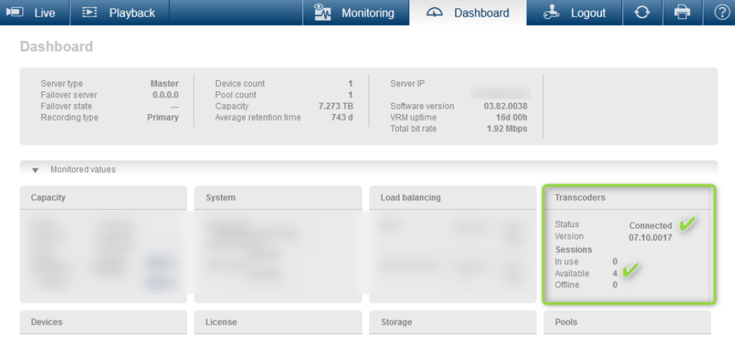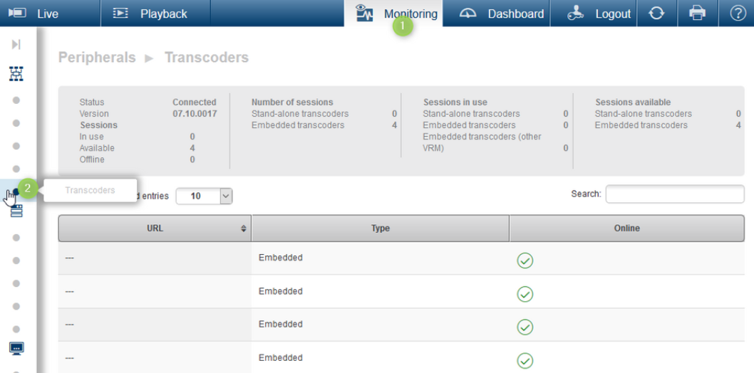 To confirm that the Transcoder is fully functional, open your browser and navigate to the VRM Monitor: