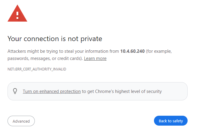 VRM Monitor webpage shows ‘Your connection is not private’ (NET::ERR_CERT_AUTHORITY_INVALID). Why?