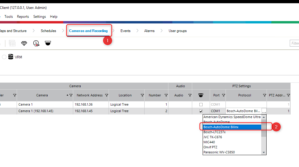 Be sure that the MIC-7100i camera is configured in BVMS Configuration Client with "Bosch-AutoDome Bilinx" protocol and not with "Bosch-AutoDome" protocol or other options from the list.
