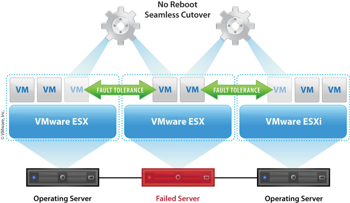 The image below shows the VMware concept. VMware ESX represents the hypervisor in this image. Stratus offers similar functionality. Microsoft does currently not offer this as part of Hyper-V.