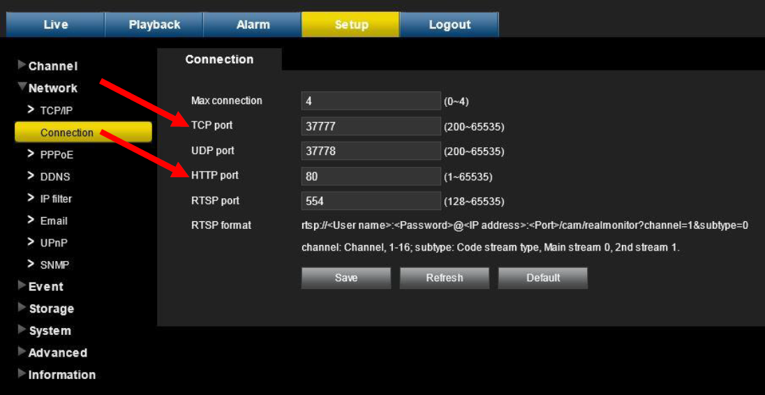 - If both ports are not open or forwarded, logon authentication and viewing live video will fail.