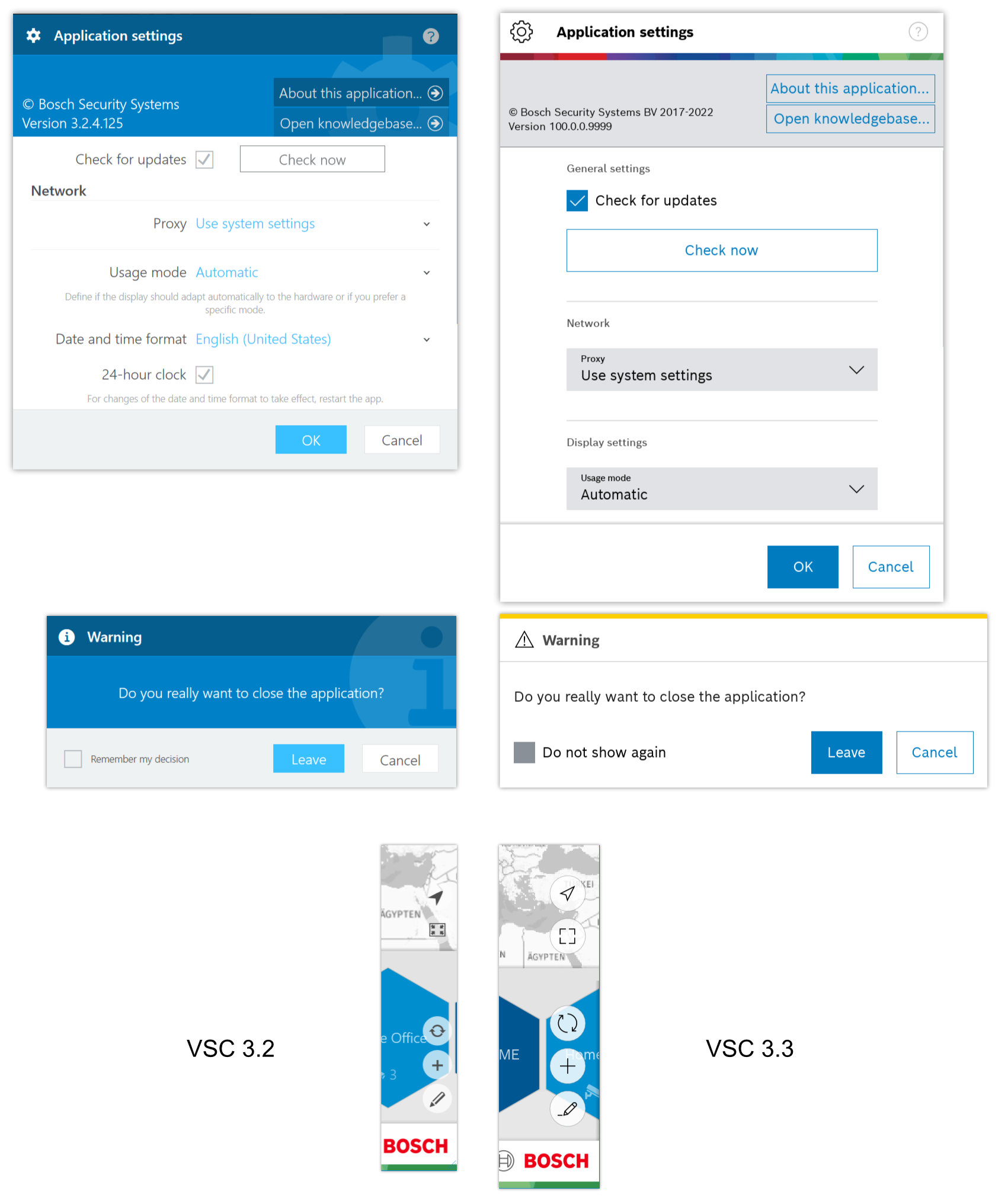 Some elements like modal dialogs and alerts now follow the current Bosch corporate style guide. This includes core elements like text fields, buttons and checkboxes. Icons are also taken from the Bosch icon library where appropriate.