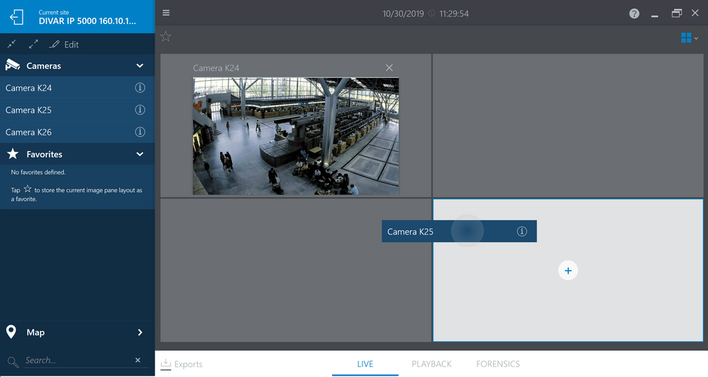 When entering a site for the first time using the Video Security Client thumbnails of all cameras of the site are shown in the sidebar. Hence, at first glance you get a perfect overview of the cameras in your video surveillance system.