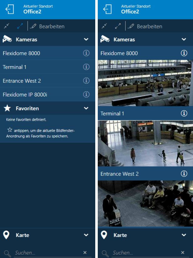 The number of supported sites (managed or unmanaged) has been increased for the mobile platforms (on iOS and Android) from 16 to 128, while each site supports up to 128 cameras. Hence, in total the Video Security app supports more than 16.000 cameras.