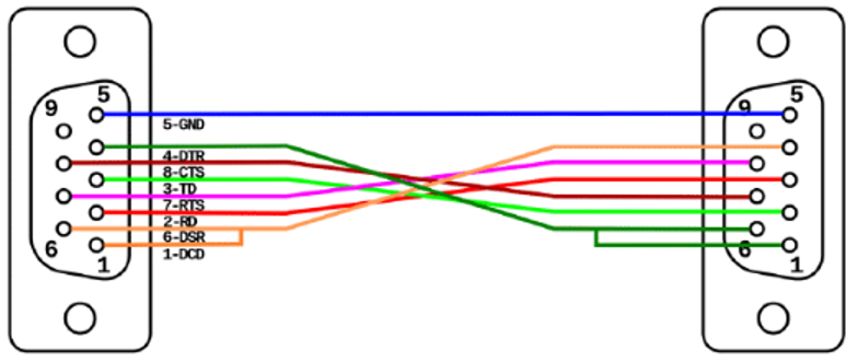 2. Validate that the null modem cable is using the following termination: