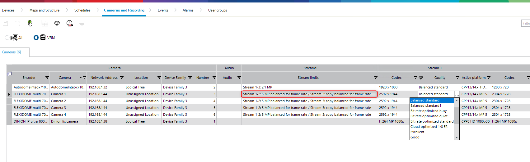 Note: The Stream limits parameter need to be changed from the camera menu. There is no option to change it from BVMS.