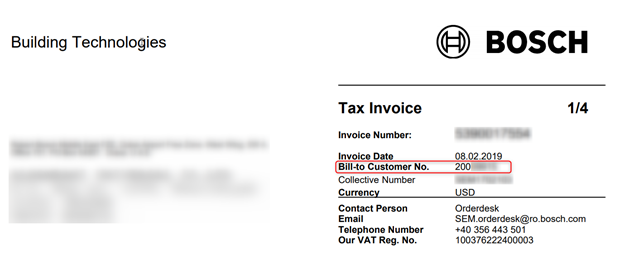 If you have any issues finding it, you can contact your Bosch sales representative and he will provide you with your correct customer number.