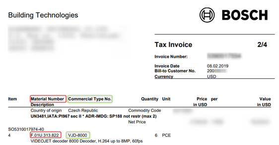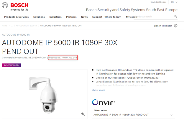 In this case, the material number/ product number for this camera can be easily found by searching for its CTN in the Bosch Security and Safety Systems official page.