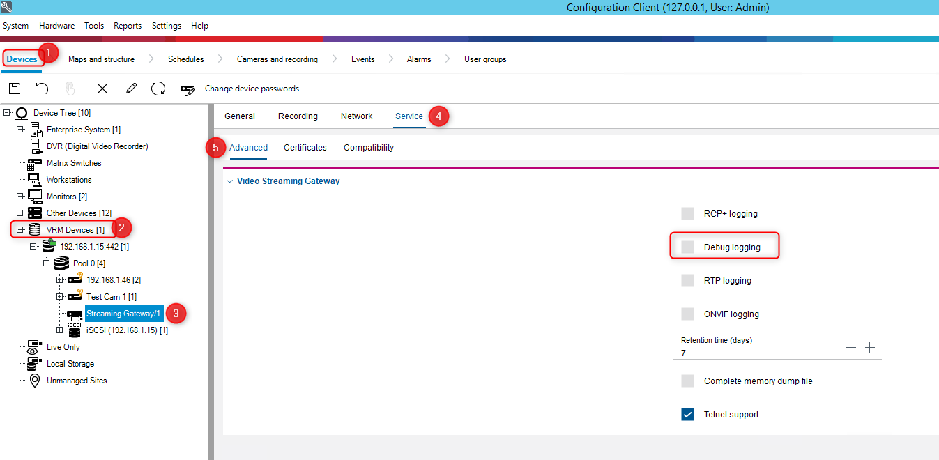 - Go to "Service" tab > "Advanced" tab > here is the option you are looking for: Debug Logging
