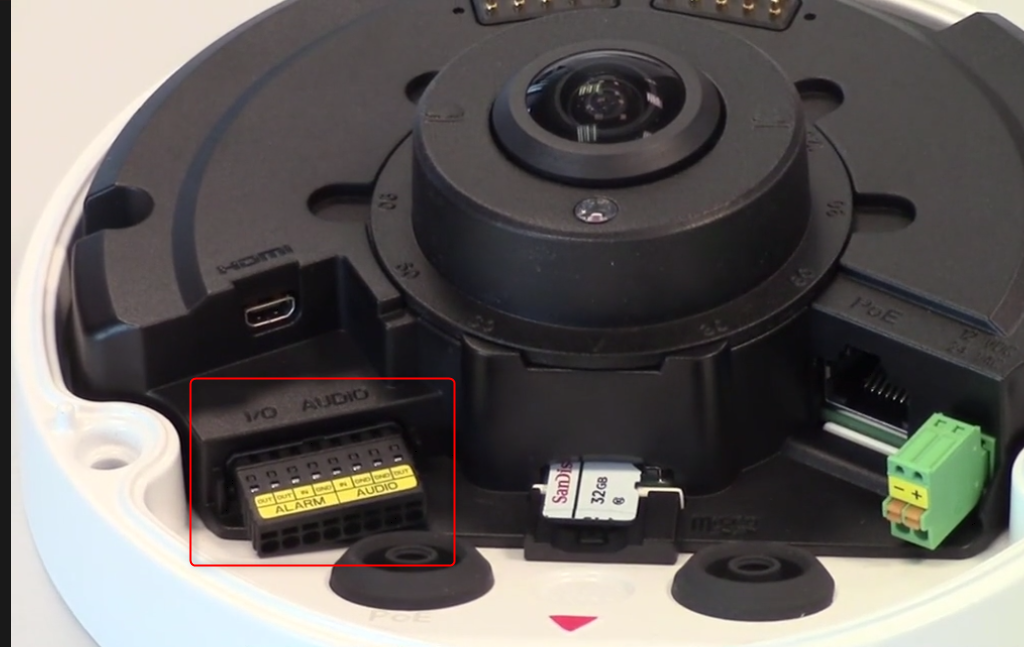 Where to find the alarm In or Out & audio pinout connector block of FLEXIDOME Panoramic 5100i IR camera?