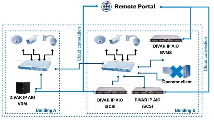 Each DIVAR IP unit connects individually to Remote Portal where they can be organized and grouped according to user preferences.