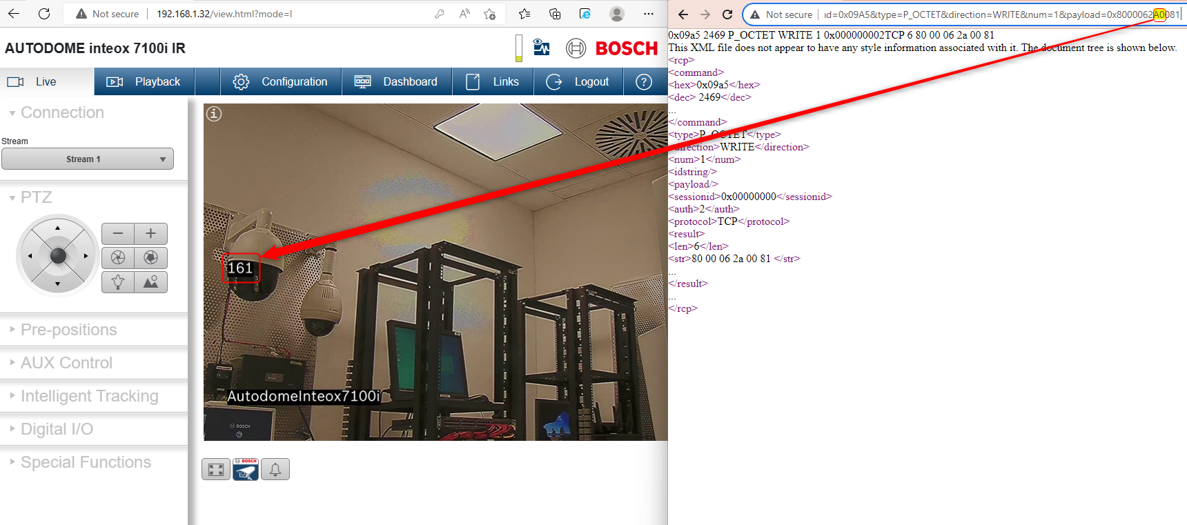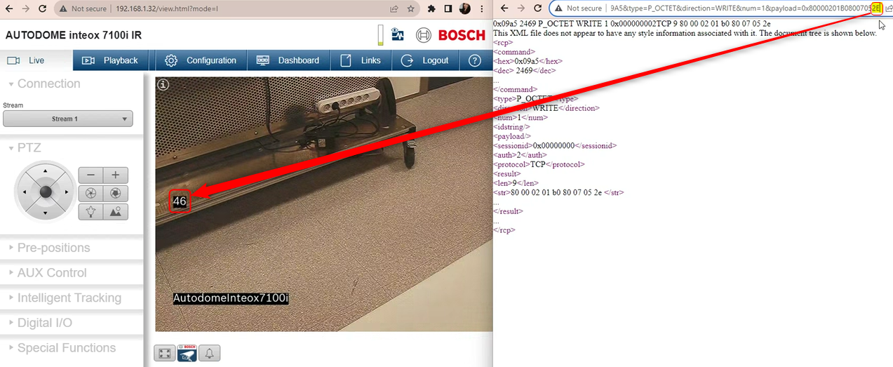 For Bosch IP cameras, you can also use BiCom as the payload instead of RCP CGI payload above.