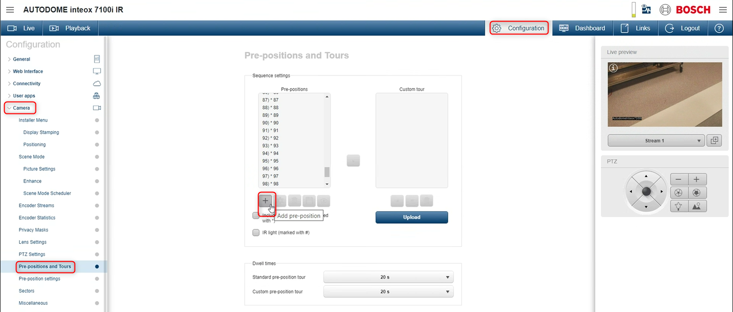 You can define your pre-positions in Configuration > Camera > Pre-positions and Tours menu: