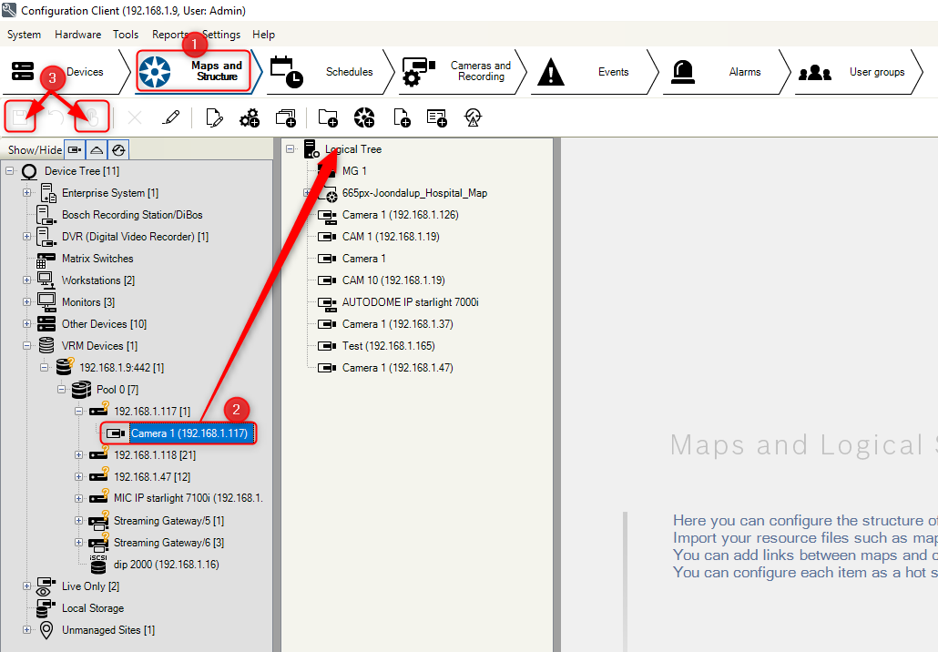 - Go to the Maps and Structure tab from Configuration Client.