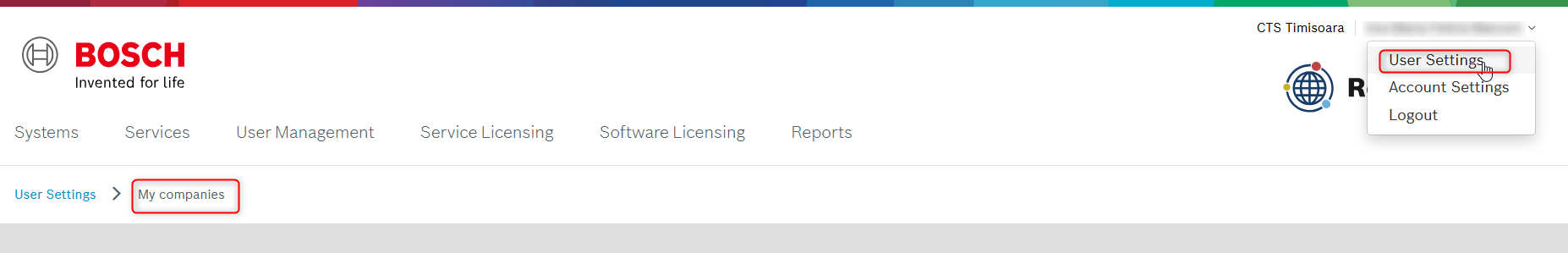 If you were invited to join in a Bosch Remote Portal account as an admin, but when logging into the Remote Portal, you can't select the company or it cannot be found under the User Settings > My companies, this means that the invitation could be still in pending.