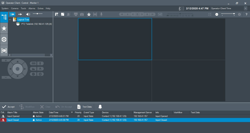 Fig 2. Input is not part of the Device Tree and the non-Admin does not receive the alarms from the Input
